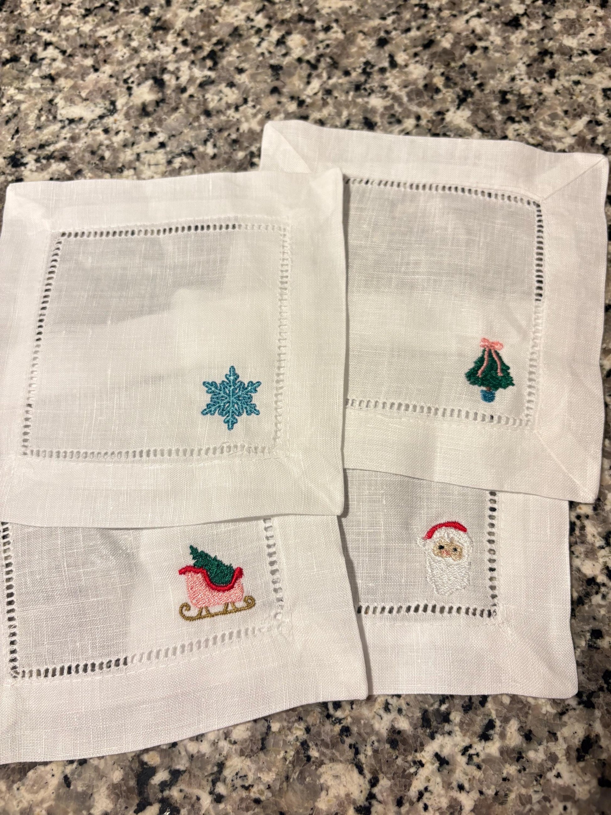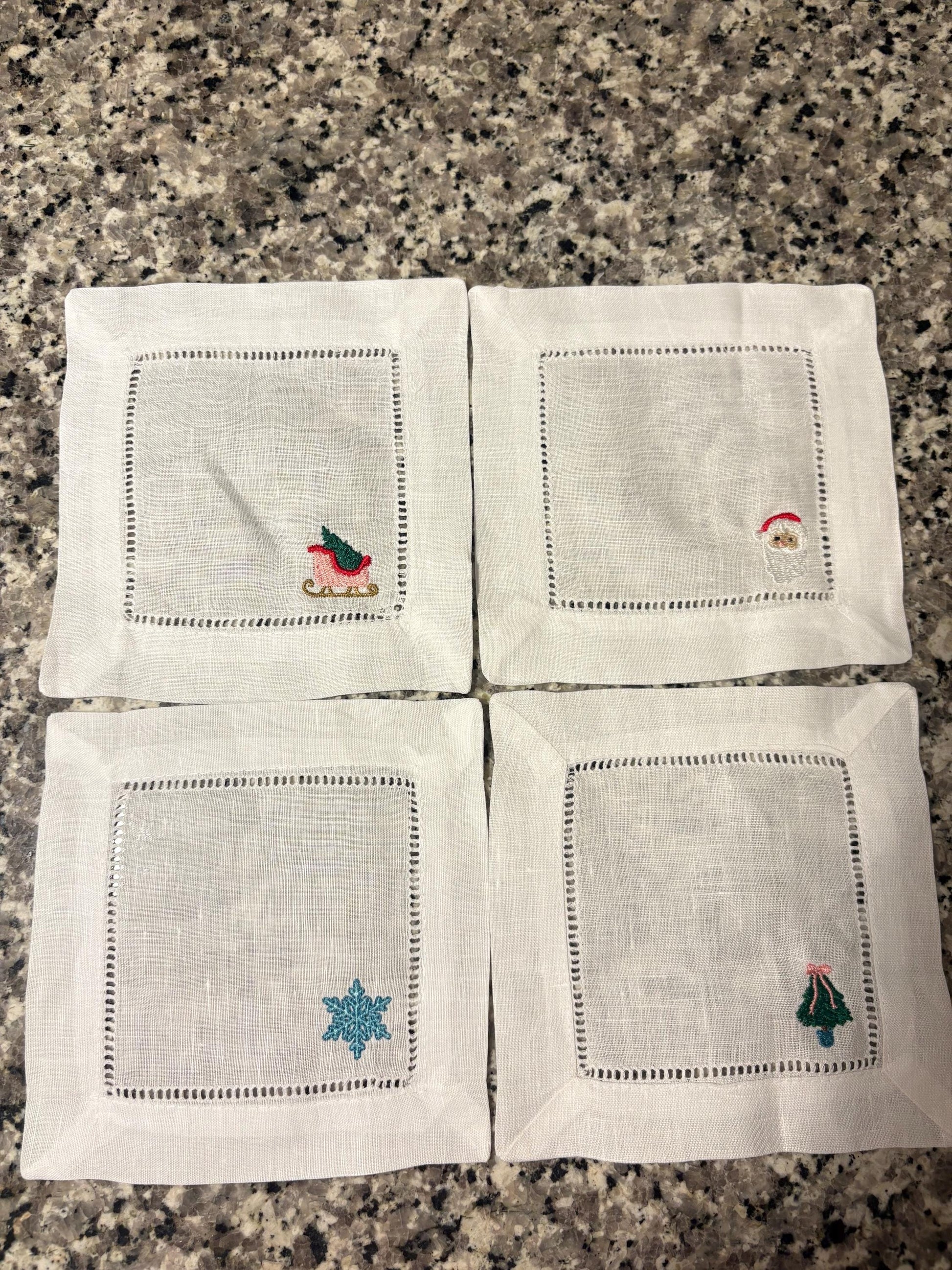 Christmas Cocktail Napkins Set of Four | Holiday Napkin, Santa Napkin