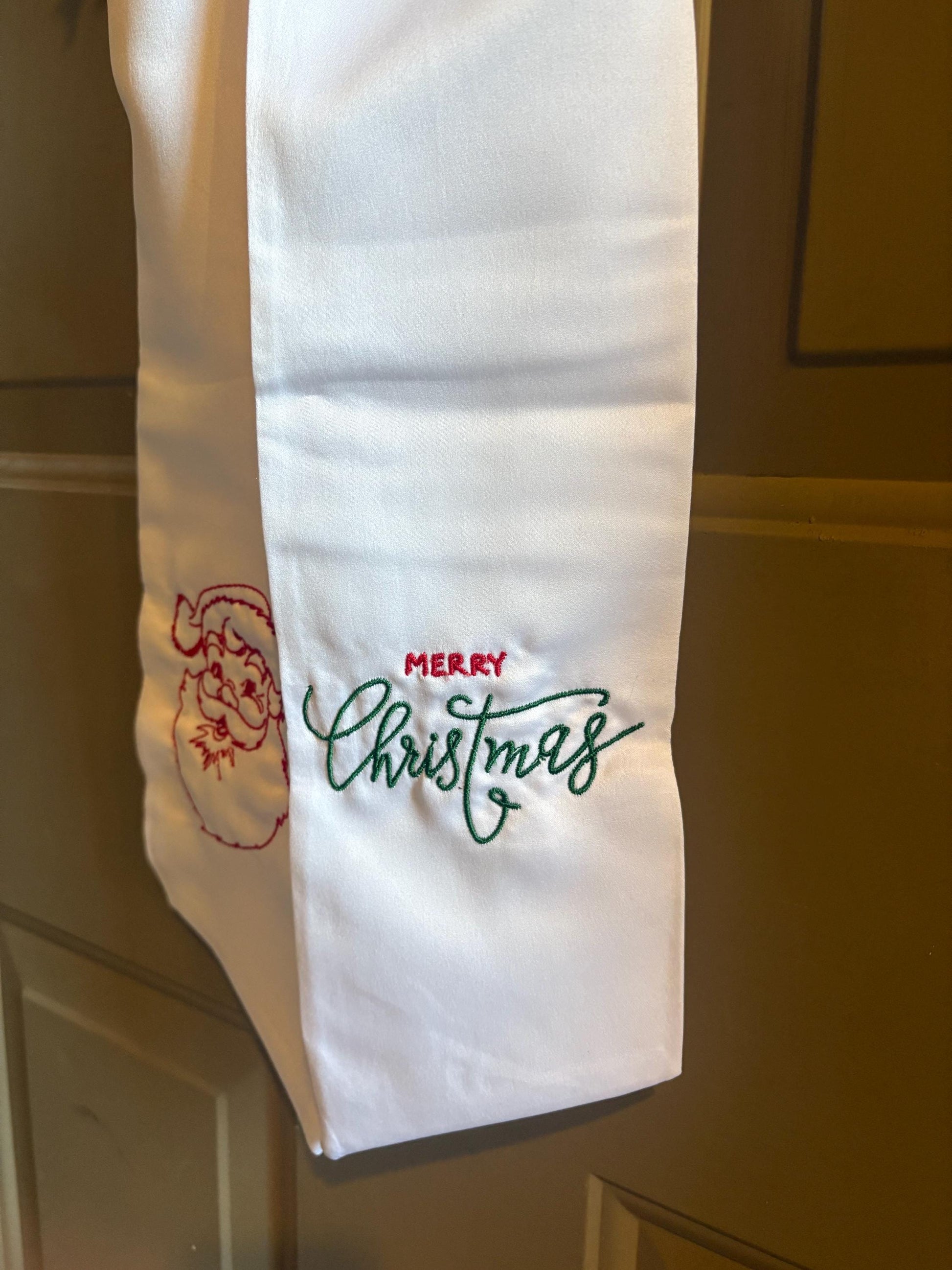 Add a festive touch to your holiday décor with this beautifully crafted Christmas wreath sash. Designed with a charming Santa motif and the phrase Merry Christmas, this sash transforms any wreath into a warm seasonal welcome. Made from high-quality, durable fabric, it drapes gracefully and ties easily around standard wreath sizes. Perfect for front doors, mantels, entryways, or as a thoughtful holiday gift. Bring a timeless Christmas look to your home with this delightful wreath sash.